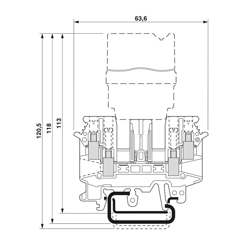 Embases multipolaires avec prise de test et connexions doubles au même potentiel de chaque côté, pour rail DIN NS 32 ou NS 35/7,5, avec flasque d'extrémité, pour connecteurs mâles ST-REL..., ST-OV... et ST-OE..., 4 pôles
