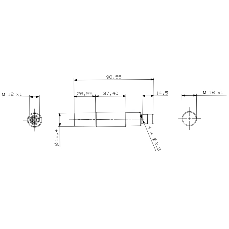• Dimensions: Ø 18 x 98.5(37,4) mm