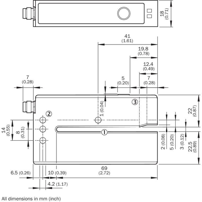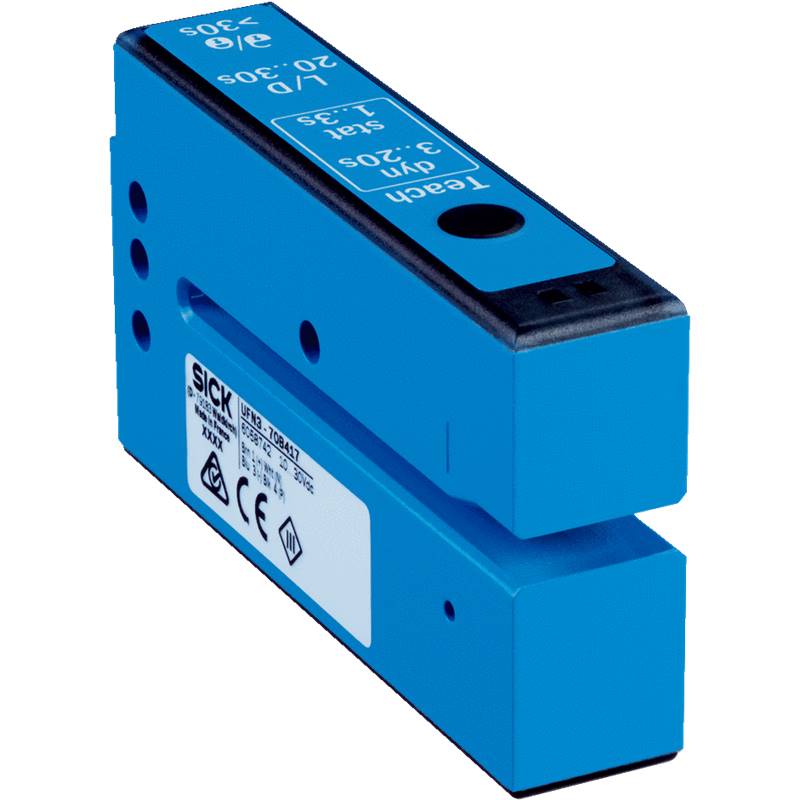 Fourche à ultrasons; Format: Fourche en U; Principe de détection: Détection à ultrasons; Écartement de la fourche: 3 mm; Profondeur de la fourche: 69 mm; Réglage: Apprentissage à 1 point, apprentissage 2 points, Apprentissage dynamique; Plus petit objet détectable (MDO): Espace entre les étiquettes 2 mm; Sortie de commutation: PNP, NPN; Mode de commutation: Commutation claire/sombre; Fréquence de commutation: 1,5 kHz; Interface de communication: -; Raccordement: Connecteur mâle M8, 4 pôles; Tension d'alimentation: 10-30Vdc; Dimensions (l x H x P): 18 mm x 47,5 mm x 92,5 mm; Matériau du boîtier: Aluminium; Indice de protection: IP65; Température de fonctionnement: +5 °C ... +55 °C; Série: UF