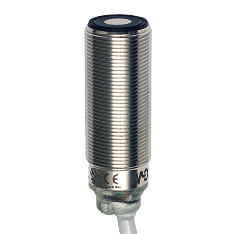 Ultrasonic sensor M18 analog. 4-20 mA 40-300 mm conn. M12 with teach-in câble, AISI316L stainless steel housing, cULus, ATEX II 3G Ex nA IIC T6 Gc