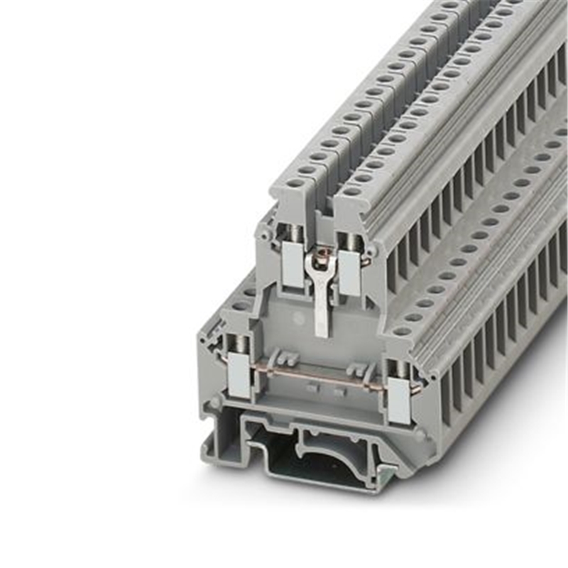 Bloc de jonction à 2 étages, à vis, sections : 0,2 mm² - 4 mm², I nom. : 32 A, U nom. : 500 V, longueur : 56 mm, largeur : 6,2 mm, couleur : gris, montage : NS 35/7,5, NS 35/15, NS 32