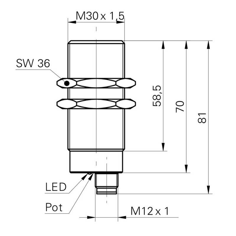 • Format: Cylindrique fileté, M30 x 1.5, faisceau axial