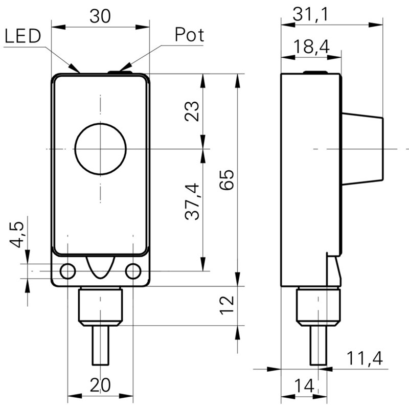 • Dimensions (L x H x P): 30 mm x 65 mm x 31(18) mm