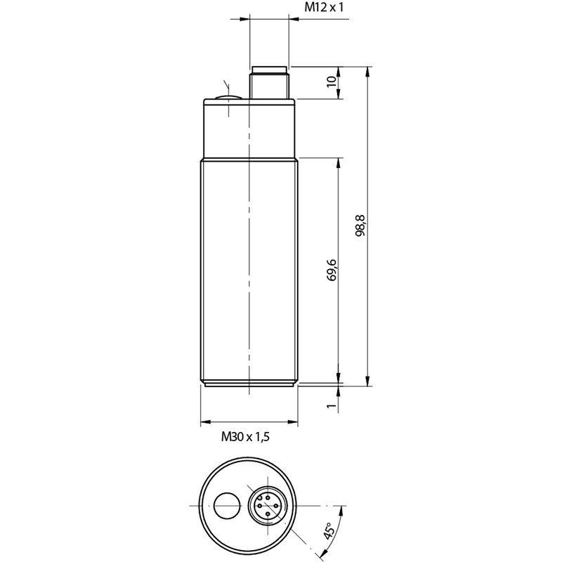 Ultrasonic sensor M30 analog. 0-10 V + PNP NO/NC 250-3500 mm conn. M12 with teach-in button, plastic housing, cULus