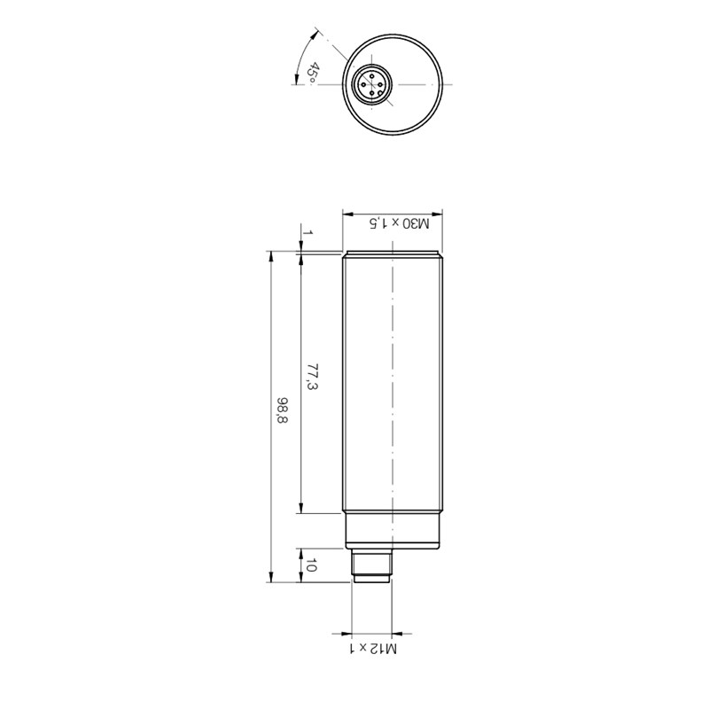 Ultrasonic sensor M30 analog. 4-20 mA+ PNP NO/NC 250-3500 mm conn. M12 with teach-in by câble, AISI316L stainless steel housing, cULus