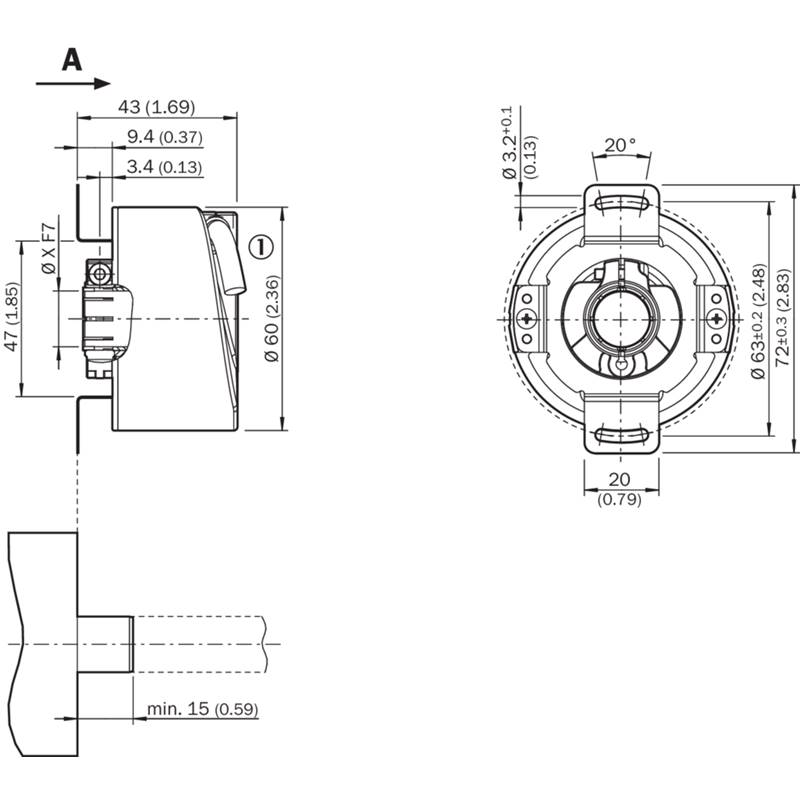Système Feedback-moteur rotatif incrémental; Type: Montage rapporté; Interface de communication: Incrémental TTL, HTL; Impulsions par tour: 1.024; Système de sécurité: non; Interface mécanique: Axe creux traversant, 14 mm; Raccordement: Câble, 8 fils, radial, 1,5 m; Série: VFS60