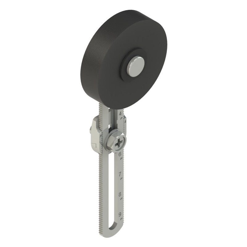 Levier rotatif en métal droit avec régulation étendue et galet en caoutchouc Ø 40 mm