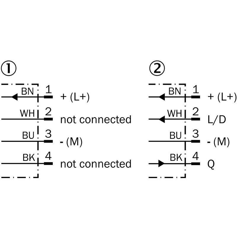 • Raccordement: Connecteur mâle M12, 4 pôles