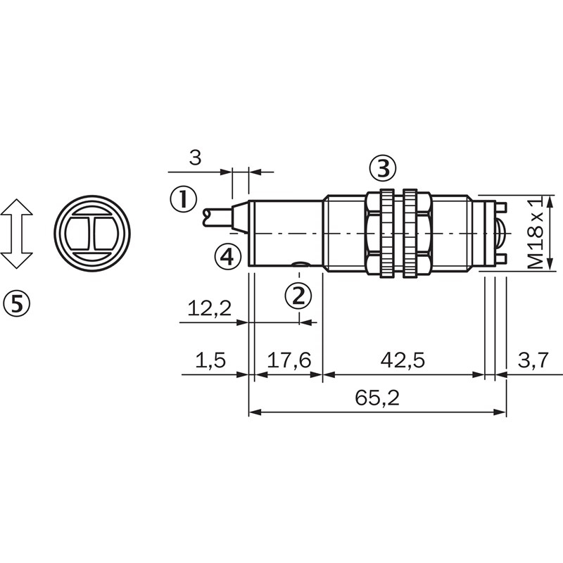 • Format: Cylindrique fileté, M18 x 1, faisceau axial