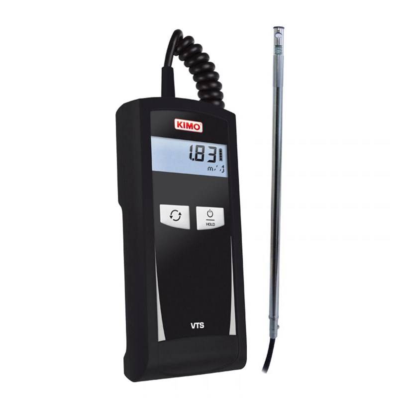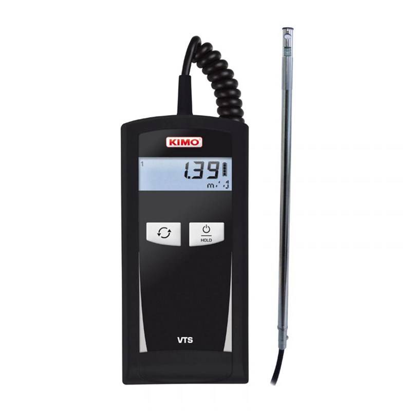 Thermo-Anémomètre à fil chaud portable type VTS avec sonde inox déportée Ø 8 mm, longueur 300 mm et 2 m de câble (0,15 à 30 m/s et 0 à +50°C). Afficheur 1 ligne. Fonctions: Vitesse, Température et Hold. Livré avec certificat d'ajustage