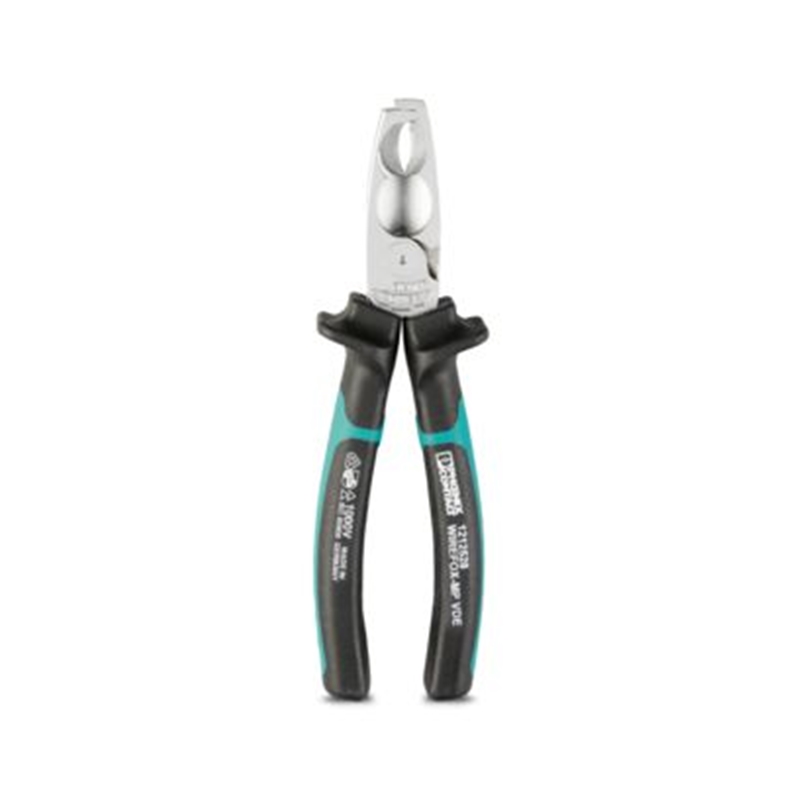 Outil de dénudage multifonctions, pour le dénudage de câbles entre 8 et 13 mm, pour le dénudage de câbles entre 0,2 et 10 mm², avec pince coupante diagonale, conforme à la norme VDE 1000 V AC/1500 V DC, avec support