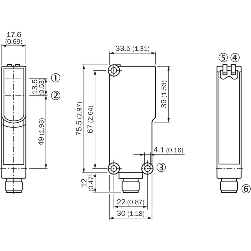 Capteur photoélectrique; Format: Parallélépipédique; Principe du capteur: Barrière réflex; Principe de détection: Double lentille; Distance de commutation max.: 0,15 m ... 6 m (PL80A); Réglage: Aucun; Source d'émission: LED, Lumière rouge visible, Polarisée; Taille du spot lumineux (distance): Ø 140 mm (4 m); Sortie de commutation: PNP; Type de commutation: Antivalente; Mode de commutation: Commutation claire/sombre; Fréquence de commutation: 200 Hz; Interface de communication: -; Raccordement: Connecteur mâle M12, 4 pôles; Tension d'alimentation: 10-30Vdc; Dimensions (l x H x P): 17,6 mm x 75,5 mm x 33,5 mm; Matériau du boîtier: Plastique, ABS; Indice de protection: IP67; Température de fonctionnement: –25 °C ... +60 °C; Série: W14-2