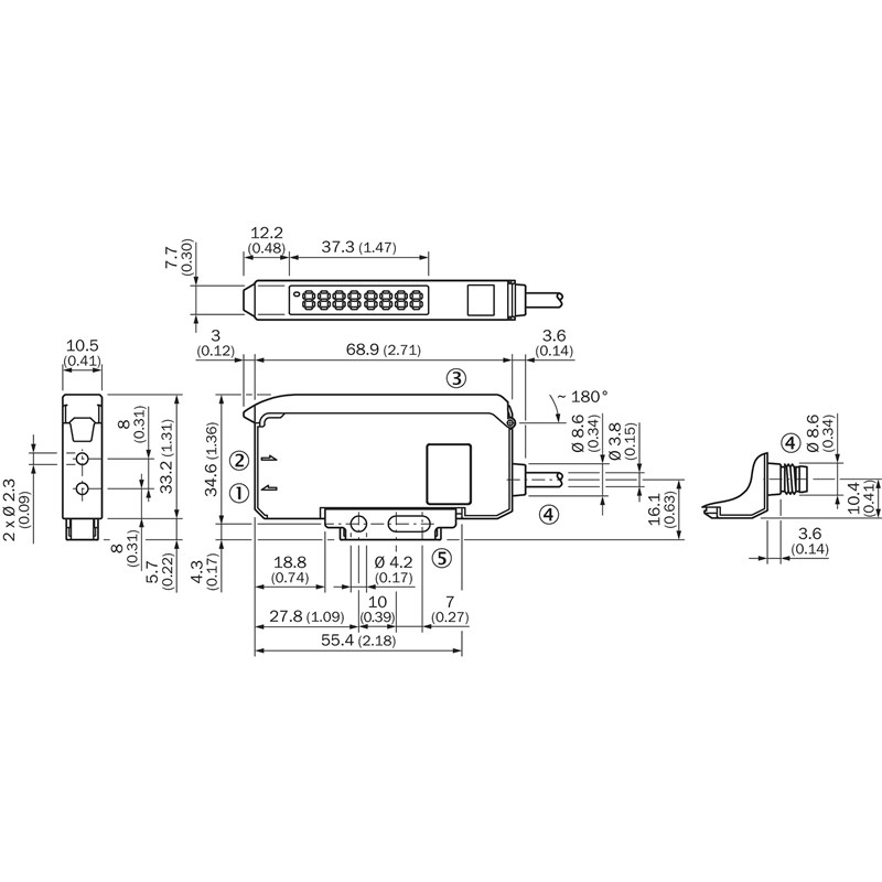 Amplificateur à fibres optiques; Type d’appareil, détail: Autonome; Distance de commutation max.: 12 ... 20 m; Réglage: Commandé par menus, touche d'apprentissage, câble; Source d'émission: LED, Lumière rouge visible; Nombre de sorties de commutation: 1; Mode de commutation: Commutation claire/sombre; Entrée: Entrée multifonction MF; Raccordement: Câble avec connecteur mâle M12, 4 pôles; Tension d’alimentation Ub: 12 V DC ... 24 V DC; Dimensions (l x H x P): 10,5 mm x 34,6 mm x 71,9 mm; Indice de protection: IP50; Contenu de la livraison: Équerre de fixation BEF-WLL180; Série: WLL180T