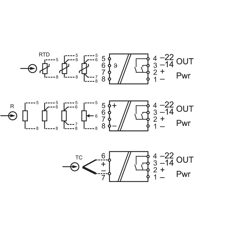• Entrées: PT100, PT1000, thermocouples, potentiomètres