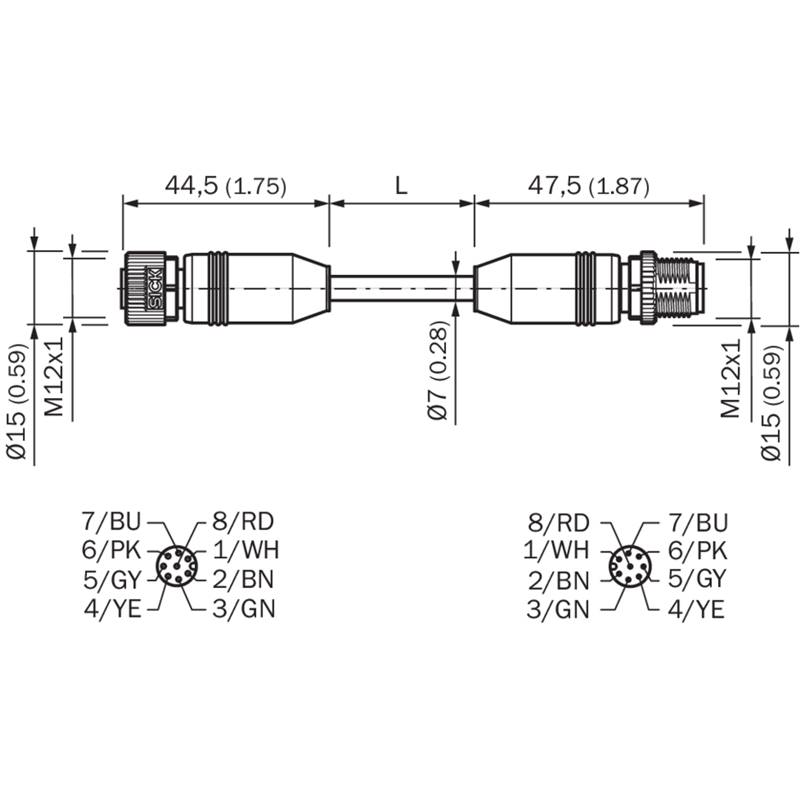 Connecteur / Câble de raccordement; Type: Câble de connexion, M12 x 1 / M12 x 1; Type de signal: Capteur / Actionneur; Raccordement A: Connecteur M12, femelle, droit, 8 pôles, codé A; Raccordement A: Connecteur M12, mâle, droit, 8 pôles, codé A; Câble: 10 m, 8 fils (8 x 0.25mm²), PUR, sans halogène, noir; Blindage: Blindé; Compatible chaine porte câble: Oui (5 MM), 10 m/s²; Tension de mesure: max. 30 V DC; Charge électrique: 2 A; Indice de protection: IP65, IP66K, IP67; Température de service: - En mouvement: –25 °C ... +80 °C- En position fixe: –40 °C ... +80 °C- Mode chaîne porte-câble: –25 °C ... +80 °C- Tête: –25 °C ... +85 °C; Domaine d'utilisation: Domaine de l’huile/des lubrifiants; Homologations: UL