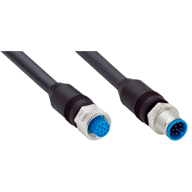 Câbles pour capteurs-actionneurs, YF2A2B-100UD3M2A2B, Mode de raccordement tête A: Connecteur femelle, M12, 12 pôles, droit, Codage A, Mode de raccordement tête B: Connecteur mâle, M12, 12 pôles, droit, Codage A, Type