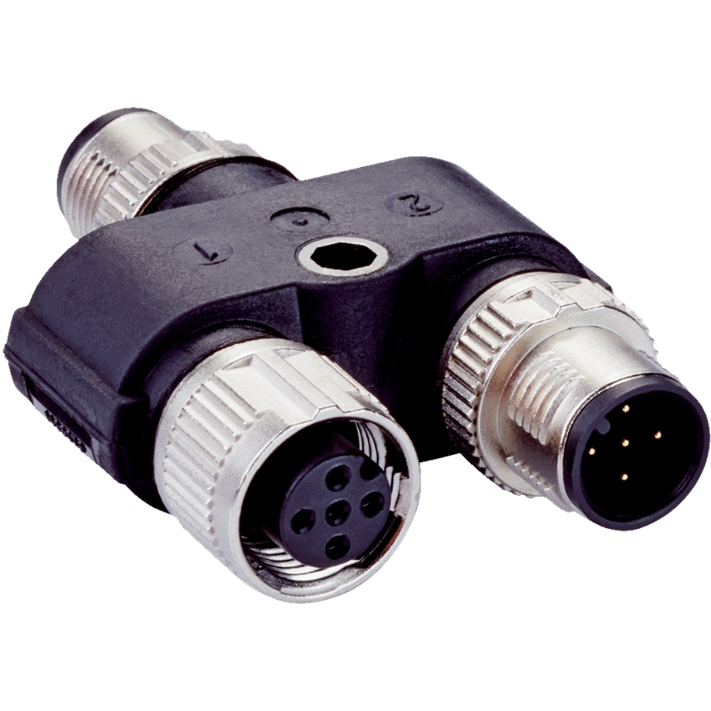 Connecteur et câble, Pièce en T, Câble CAN Y, Raccordement tête A: Connecteur femelle, M12, 5 pôles, Raccordement tête B: Connecteur mâle, M12, 5 pôles, Type de signal: CAN, Power