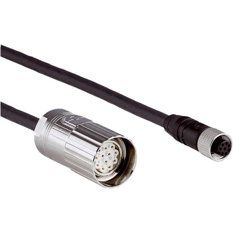 Connecteur / Câble de raccordement; Type : Câble de connexion; Mode de raccordement A : Connecteur M12, femelle, droit, 8 pôles; Mode de raccordement B : Connecteur M23, femelle, droit, 17 pôles; Câble : 1 m, 8 fils; Description : HIPERFACE®, non blindé