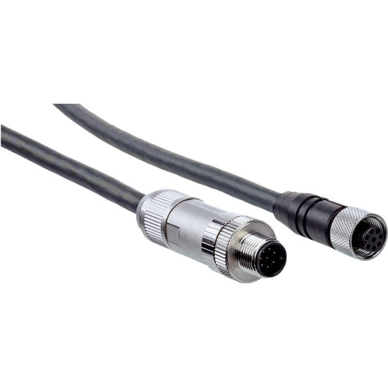 Connecteur / Câble de raccordement; Type : Câble de connexion; Raccordement A : Connecteur M12, femelle, droit, 8 pôles, codé A; Raccordement B : Connecteur M12, mâle, droit, 8 pôles, codé A; Câble : 2 m, 8 fils, PUR, sans halogène; Blindage : Blindé; Section du conducteur admissible : max. 0,25 mm²; Domaine d'utilisation : Mode chaîne porte-câble