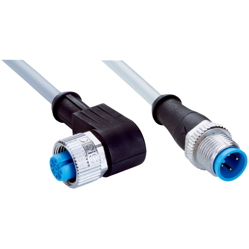 Câbles pour capteurs-actionneurs, YG2A24-100VB4M2A24, Mode de raccordement tête A: Connecteur femelle, M12, 4 pôles, coudé, Codage A, Mode de raccordement tête B: Connecteur mâle, M12, 4 pôles, droit, Codage A, Type d