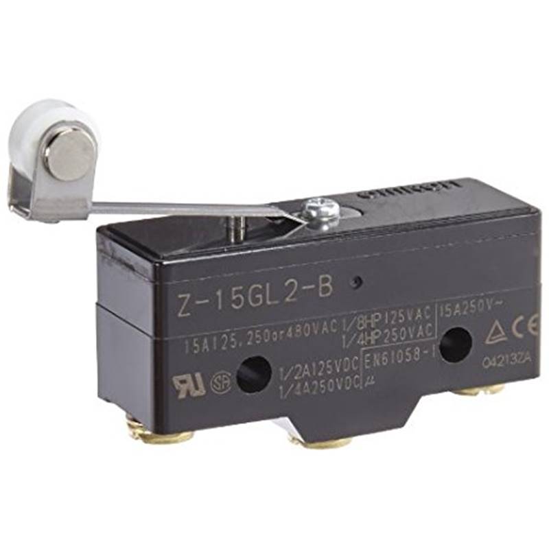 Microrupteur standard; Actionneur: Levier à ressort à galet; Contacts: SPDT (action rapide), 15A; Intervalle entre contact: 0,5 mm (standard); Raccordement: Bornes à vis; Matériau des contacts: Alliage d'argent; Classe de protection: IP00; Température ambiante: -25 °C à 80 °C (sans givrage)