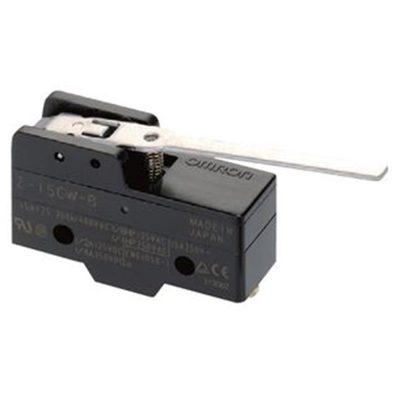 Microrupteur standard; Actionneur: Levier long à faible force; Contacts: SPDT (action rapide), 15A; Intervalle entre contact: 0,5 mm (standard); Raccordement: Bornes à vis; Matériau des contacts: Alliage d'argent; Classe de protection: IP00; Température ambiante: -25 °C à 80 °C (sans givrage)