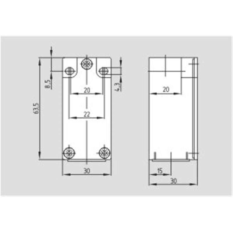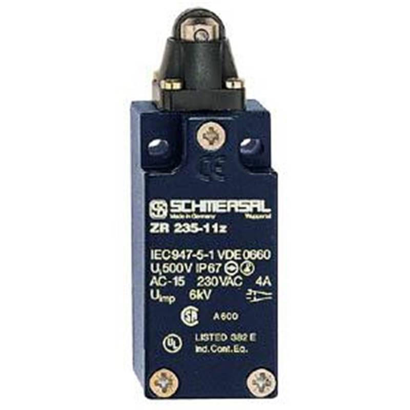 Interrupteur de position de sécurité; Boitier: Métallique, cotes de montage selon EN 50047; Contacts: 1NF+1NO (rupture brusque), 10 A; Matériau des contacts: Argent; Tête: Poussoir à galet (C selon DIN EN 50047); Entrée de câble: M20x1,5 (1 conduit); Dimensions (L x l x H): 30 mm x 30 mm x 86 mm; Materiau du boîtier: Métal, zamac injecté; Classe de protection: IP67; Température ambiante: -30 ... 80 °C; Série: 235