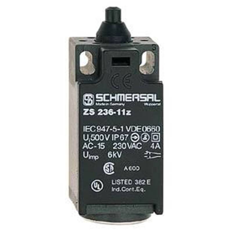 Interrupteur de position de sécurité; Boîtier: Plastique, cotes de montage selon EN 50047; Contacts: 1NF+1NO (rupture brusque), 10 A; Actionneur: Poussoir (B selon DIN EN 50047); Entrée de câble: M20x1,5 (1 conduit); Dimensions: 30 mm x 58,5 mm (73,5 mm) x 30 mm; Materiau du boîtier: Plastique, thermoplastique renforcé de fibres de verre; Matériau de contacts: Argent; Degré de protection: IP67; Température ambiante: –30 °C ... 80 °C; Série: 236