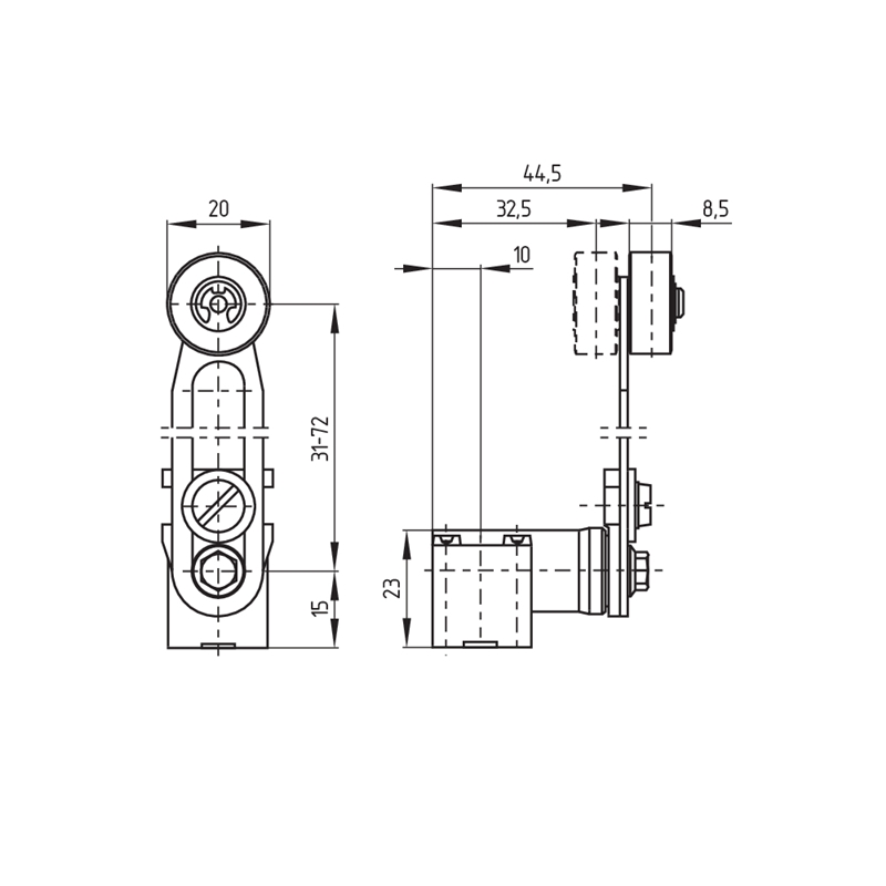 Fin de course sécurité PLAST LEVIER GALET REGLABLE